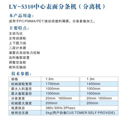 LY-5310中心表面分條機